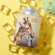 AI generated artwork of a tender moment between a giraffe mother and her young calf. Personalise with a name or event. Reverse shows identical design.