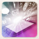 Touchscreen Smart Phone Downloading Apps and Cloud Computing in Blue and Purple
