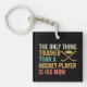 Hockey theme keychain for the hockey mum with hockey puck and sticks with text of off white, gold, aqua and melon that reads The Only Thing Tougher Than a Hockey Player is His Mum!