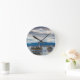 The clock did not take as long to arrive as I thought it might and was extremely well packaged. I didn't do the measurements so I didn't realize it is a little smaller than the average clock but that does not matter (just make sure you check if that's important to you).It is really nifty! It seems very solid and well made not flimsy at all. It has been going well and has kept good time in its few weeks on my wall. Nice product. Gets noticed too! Nicer in real life than the picture but true to the picture