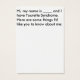 A picture of a moon with "Like the moon symptoms of Tourettes wax and wane. Sometimes it's hard to see anything past the Tourettes and sometimes only a small bit of the Tourette is visible to the observer, but it is always there. Unlike the moon Tourettes doesn't follow a predictable pattern." on the front with a customisable back that starts: "Hi, my name is _____ and I have Tourette Syndrome. Here are some things I'd like you to know about me:"