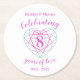 Tourmaline celebrating 8 years of love party coasters. Simple outline heart stone line art graphics green, pink and white 8th tourmaline effect Wedding Anniversary coasters. Customise with your own eighth wedding party details. 8th Anniversary is traditionally associated with tourmaline and the heart symbolises love. Graphics and design by Sarah Trett for www.mylittleedenweddings.com on zazzle.