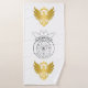 Towel with the crown of the Vishnuh Society and two gold images of an eagle.