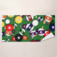 In the 19th century a poolroom was a horse race betting parlour. Pool tables were installed so the bettors could pass time between horse races. Billards, or pool, is the descendant of a game similar to croquet that was played in 15th-century Europe. Though we don't know for sure, it is strongly suspected that billiards came to America with Dutch and English settlers. By the 1700's, skilled cabinet makers were crafting beautiful tables, though the equipment was, otherwise, quite primitive. Fifteen-ball pool came on the scene in the late 1800's and grew in popularity through the 1940's. Billiards was revived in 1961 with the release of the movie THE HUSTLER. It enjoyed another surge in the mid 1980's with the release of the movie sequel, COLOR OF MONEY. Since that time, there has been an evolution of the environs in which we find pool tables -- they're in restaurants and night clubs and sports bars, allowing pool to find a modern audience and new generations of enthusiasts. This marvellous design is layers of billiard balls in varying sizes for greater depth. They are scattered all over a "green felt" backdrop. This fabulous towel set is an excellent choice for the "man cave" or for Father's Day .