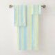 This sky blue, lemon yellow and white stripe pattern towel set is a chic addition to your bathroom and tote bag when sunbathing season begins