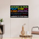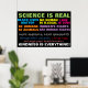 March or protest poster. Science is real, black lives matter, no human is illegal, love is love, be humane to animals, women's rights are human rights, save America, save humanity, through public education, a living wage, and single payer health insurance, kindness is everything.