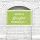 Baby shower welcome featuring green road sign design with white text. Customise with the name of your town.