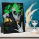 "Toxic Gas Mask: Neon Flames" features a futuristic gas mask emitting eerie green flames. This striking design symbolises survival in dystopian worlds, making it perfect for sci-fi and apocalypse fans.