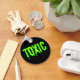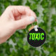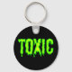Toxic - black keychain with vivid yellow-green drippy lettering.