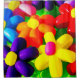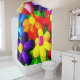 Bunch of inflatable toy balloons shaped as flowers of different colours. Merry holidays! Be happy! Shower curtain to decorate your bathroom for fun and good mood.