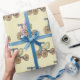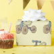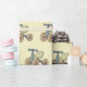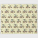 Wooden toy bike icon with four wheels in vintage colour palette. Seamless pattern.