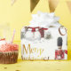 Toy British soldier in a bearskin hat with a cheery snowman and a Merry Christmas greeting in gold text