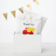 Cute red toy dump truck baby shower party favour bags for new baby boy. Personalised party supplies for babyshower, birth or pregnancy. Add your own name of child / newborn and thank you for coming message. Sympathetic whymsical typography template. Custom colour background. Hand out selfmade sweets, homemade pastry food, fudge candy, cupcakes, baked cakes, doughnuts and other fingerfood for guests. Fun colourful construction theme dumptruck illustration for kids.