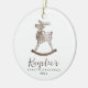 Toy Reindeer Baby's First Christmas Ceramic Ornament — The precious personalised xmas ornament template features an adorable watercolor toy reindeer rocking horse. The text boxes allow for easy customisation of any baby's name in a handwritten calligraphy script font, and birth year in a simple, minimalist sans serif. Both sides of this personalizable, gender neutral keepsake tree decoration are identical.