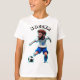 The t-shirt feels and looks great quality, a good thick cotton. It will be a little big for my son, but that means he will be able to wear it and not out grow it too soon. The print was as described on the order when personalised. True size, shape and colour T-shirt- thanks.