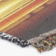 A quality printed throw has its advantages. This is a much finer weave throw than its loopier cousins, and though lighter, it is worth the investment for custom room accessorizing. The back is much prettier than the typical brown, and the fringe on the long sides very vivid, the selvage nicely done. Before photographing, I washed the throw in cold water, delicate, with a thicker woven throw the same size. On tumble dry low, this throw was dry in half the time as the other. This is a very practical quality if you use throws for furniture covers or to wrap up in frequently. The sleekness of the fabric makes it a great layer for accenting or protecting without the feeling of sitting on too much stuff. Perfect for napping or when you feel a light chill coming on. The color printing is beautiful and on this fabric, matched the design and color of my Photoshop image. This is an advantage for blending room fabrics and colors. The fringe on the short sides prints the colors from the design image and therefore varies from the side fringe. I streaked a white fractal line through the plaid pattern to give the illusion of weaving. This printed as crisp as an illusory thread, and put some white in the short side fringe, showing another advantage of print vs loomed- for artistic purposes, line lines, detail, and color integrity can be planned and preserved. My loomed throws have color limitations and more of a needlepoint texture. Print throws reproduce an exact image. The throw felt a little stiff straight out of the package, but this went away in the first delicate wash. Of course I searched the wash water for ink or bleeding and there was none.