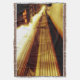 In the original photograph by ZoeSPEAK on this Throw Blanket, passengers in the distance disembark from the train stopped on Track 2. Bright sunlight strikes the top of the shiny metal train, and a sign with the date and time can be seen hanging under the platform roof, with the rest of the train and platform in shadow.