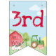 This birthday banner will be perfect for your farm theme / tractor themed birthday party! Banner reads "Happy 3rd Birthday" but personalise with the words and age of your choice. Perfect for a "Three-I-E-I-O" farm animal birthday party. Design features a farm scene with red barn, green tractor, cow, and pig.