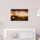 Featuring a breath taking view of a tractor ploughing the wheat fields with a orange sun set behind the tractor.on this poster