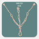 An illustration of a trad climb or mixed climb belay station. A sling attached to quickdraws, bolts, wires / nuts with a screw gate carabineer as a master point. A design for rock climbers, big wall climbers or anyone who uses rock climbing equipment.