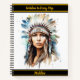 A powerful representation of a Native Indian woman adorned with a colourful feather headdress, showcasing her strength and cultural heritage in a watercolor style