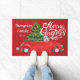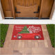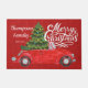 Traditional beautiful red burlap and red truck doormat. A christmas doormat with family name design. Perfect contrast by the white text on the elegant red burlap.