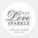 Elegant typography wedding favour stickers featuring a simple design with the message, "Let Love Sparkle" in black calligraphy and serif fonts, and your names and date below, over a white background. The fonts and background colours may be changed to any colours you wish. These fancy and classy stickers are perfect for a formal wedding and are a great way to add a personal touch to your favours.