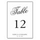 Elegant wedding table number featuring a simple and classic design with "table" in a formal black calligraphy along with your names and date in a serif font, over a white background. A classy and traditional design that is perfect for a black tie wedding. Add each table number to your cart individually.