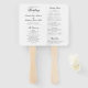 Traditional style wedding program hand fan featuring a simple design with your names and the headers in an elegant calligraphy. The front has your order of ceremony and the back has your wedding party and thank you message. This classic black and white wedding program hand fan is perfect for a formal wedding.