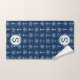 A traditional blue and white nautical design for your boating trips. It features an anchor and a ship's wheel. It has a monogram you can personalise.