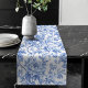 Traditional Blue Toile Roses Floral Table Runner