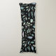 Traditional Botanical Leaf Pattern Blues on Black Body Cushion
