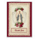 Our beautiful custom designed vintage Catholic Blessed Virgin Mary, Our Lady of Grace Thank You Cards with vintage red roses will surely express your appreciation to family and friends for all their support during your difficult time of loss. A photo may be added with your loved one's details. All text and fonts can be modified.