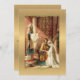 Beautiful Traditional Catholic Wedding Invitation of the betrothal of Mary & Joseph with the High Priest in the temple. All text may be easily customised. The background is a gold background on the front and a lace background on the back of the card.