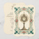 Celebrating the Sacrament of First Holy Communion is a wondrous occasion. This traditional Catholic custom-designed vintage First Holy Communion Invitation with a gold Monstrance with the Eucharist is sure to express the beauty and solemnity of this special day. All text and fonts can be easily modified.