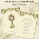 Celebrating the Sacrament of First Holy Communion is a wondrous occasion. This traditional Catholic custom-designed vintage First Holy Communion Invitation with a gold Monstrance and the Holy Eucharist with white and gold floral accents is sure to express the beauty and solemnity of this special day. All text and fonts can be easily modified.