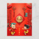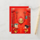 Festive traditional Chinese greeting with firecrackers, Lucky knots and auspicious clouds + golden Rabbit paper-cut with Fu ideogram into a circle + two cute children to wish Happy New Year. Design on vertical holiday postcard. Matching greeting card, square flat card, red envelope, sticker, party supplies and more... Perfect for Chinese New Year of the Rabbit 2023.