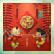 Festive traditional Chinese greeting with firecrackers, Lucky knots and auspicious clouds + golden Tiger with Fu ideogram paper-cut into a circle (model n°04) + two cute children to wish Happy New Year. Design on square window cling - Size: 24" x 24", Style: Partial Transparent Design. Matching standard greeting card and red envelope. Perfect for Chinese New Year of the Tiger 2022. ----- "The Tiger (寅) is one of the 12-year cycle of animals which appear in the Chinese zodiac related to the Chinese calendar. The Year of the Tiger is associated with the Earthly Branch symbol 寅. (...) People born within these date ranges can be said to have been born in the "Year of the Tiger", while also bearing the following elemental sign: