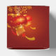 Traditional Chinese design with Chinese lanterns, dragon and roll with wishes in Chinese. Design on classic cube favour box with large golden circle (lunar year). Available in other styles: gable, tent, take-out. Matching greeting card, invitation and more... Perfect for Chinese Dragon New Year.