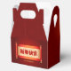Traditional Chinese design with Chinese lanterns, dragon and roll with wishes in Chinese. Design on gable favour box with customisable message and Family name in back. Available in other styles: Tent, classic cube, take-out. Matching greeting card, invitation and more... Perfect for Chinese Dragon New Year.