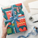 A seamless pattern that combines traditional holiday elements with a modern twist, incorporating bright colours and geometric shapes generated with the help of Ai.