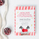 Traditional red and white design with Santa stuck down a chimney on the front of the invitation