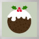 A modern Christmas illustration featuring a simple image of a traditional Christmas pudding complete with white icing, holly leaves and berries. The background is a soft green colour but you can change it to anything you want.