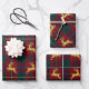 Traditional Christmas Reindeer Plaid Wrapping Paper Sheet