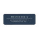Traditional return address labels featuring a simple design with a thin line dividing your business name and two lines of text for your return address in a classic serif font in ivory over a navy blue background. A basic and plain design that works for any business. These are a great way to add a professional touch to your envelopes.