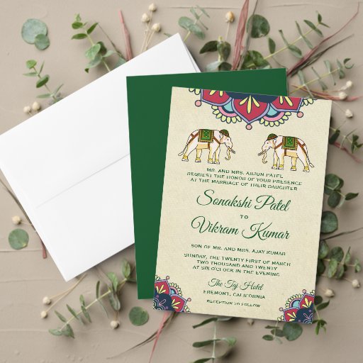 Traditional Elephants Indian Henna Mehndi Ceremony Invitation