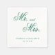 Classic style Wedding Napkin featuring "Mr. and Mrs." in an elegant calligraphy typography along with your names and wedding date. All text is a jewel tone emerald green over a white background and may be changed to any colours you wish by clicking the "customise" button. These napkins are a great way to add a personal touch to your reception, engagement party or rehearsal dinner and are perfect for a formal wedding.