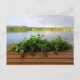 Postcard of traditional Finnish bath whisks made out of fresh birch leaves and twigs on a wet jetty by the lake on a Midsummer Eve.