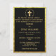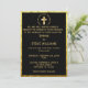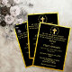 Traditional Gold Christian Cross Black Wedding Invitation