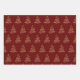 Traditional gold metallic Christmas tree deep red Wrapping Paper Sheet